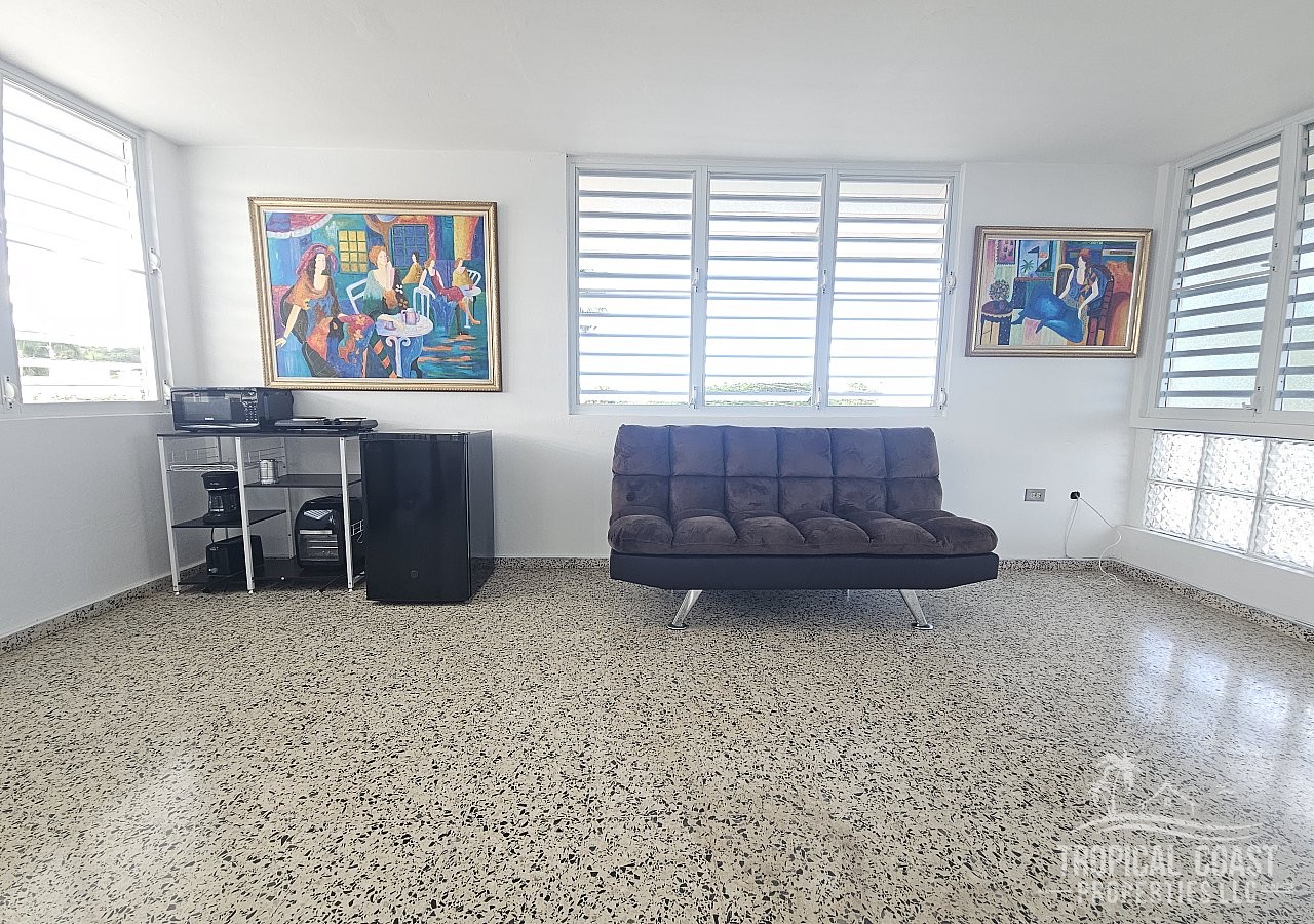 Enjoy comfort and convenience at Casa Diamanté, a fully furnished second-floor efficiency with a huge relaxing balcony in AguadaCasa Diamanté is a furnished living space (efficiency) located on the second level of the main property. The main house is shared, and only the second level is available for rent. It features one bedroom with air conditioning and a closet, one bathroom, a spacious living area, a kitchenette, and a huge balcony ideal for relaxing. It is located in the Piedras Blancas neighborhood of Aguada, approximately five (5) minutes from Aguada Beach (Balneario de Aguada) and thirty (30) minutes from Rafael Hernández Airport (BQN), Ramey Base, and other nearby points of interest. The property is rented fully furnished and will be leased to a single woman, as the main residence will be shared with another woman who will occasionally stay on the first level. Water service is included in the rent, and electricity is included up to a cap of one hundred dollars ($100.00) per month. Coordinates: 18.369109, -67.194936