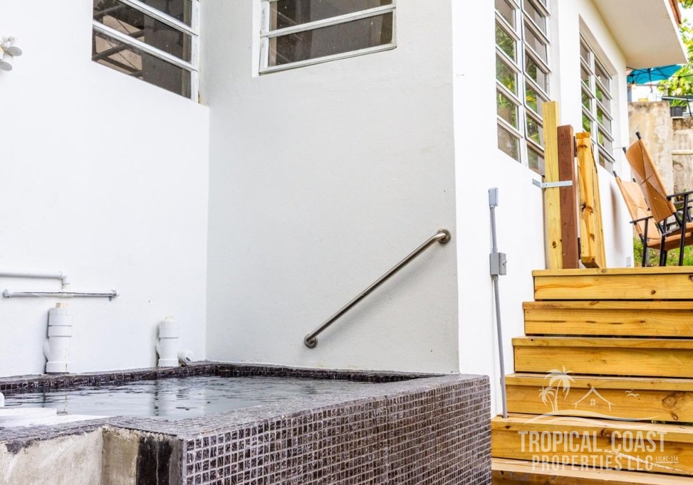 The home features two separate one-bedrooms, one-bathroom apartments—one upstairs and one downstairs—providing comfort and privacy for guests.  Enjoy peaceful mornings on your private balcony, surrounded by the soothing sounds of native birds and coquis. With ample land to expand, this tranquil haven is an ideal escape for nature lovers, surfers, and those seeking a unique retreat in paradise.