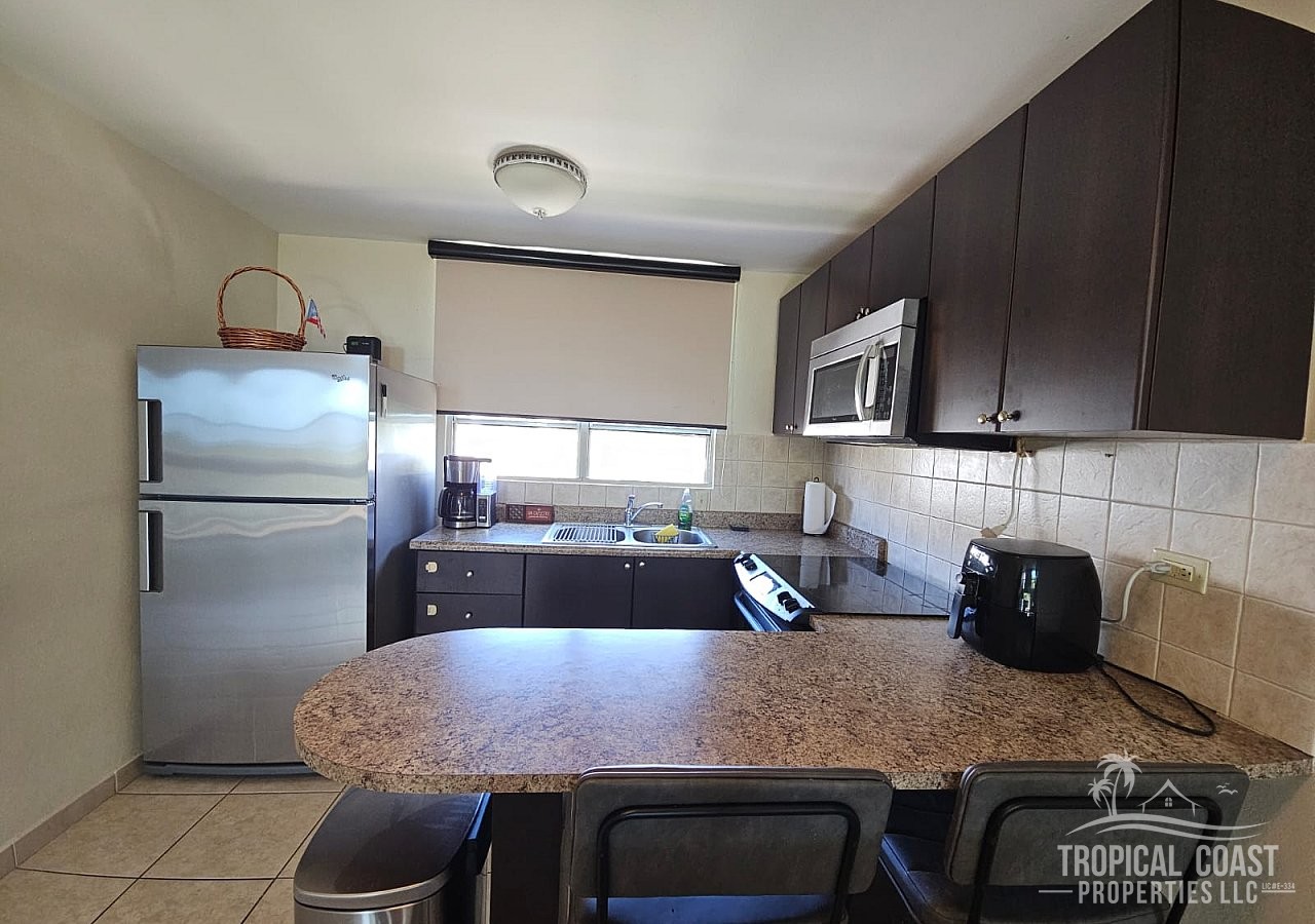 Cozy apartment located on the second floor of Building 1 at Estancias de Isabela Condominium. This beautiful unit enjoys plenty of coastal breeze and natural light and features 3 bedrooms, 2 full bathrooms, a spacious living room, kitchen-dining area, laundry area, balcony, and two parking spaces. This elegant and modern gated complex is located just 6 minutes from the renowned Jobos Beach and some of the best restaurants in the area. It also has a swimming pool, gazebo for activities, and a playground area for children. Its convenient location makes it extremely attractive for beach lovers, food enthusiasts, or those working nearby, as it is located less than 15 minutes from Pratt & Whitney, Honeywell, HP, Rafael Hernández Airport (BQN), Lufthansa, the Coast Guard, Homeland Security, among others. The unit is rented fully furnished and includes internet service. Water and electricity services will be tenant’s responsibility. Coordinates: 18.499413, -67.074501