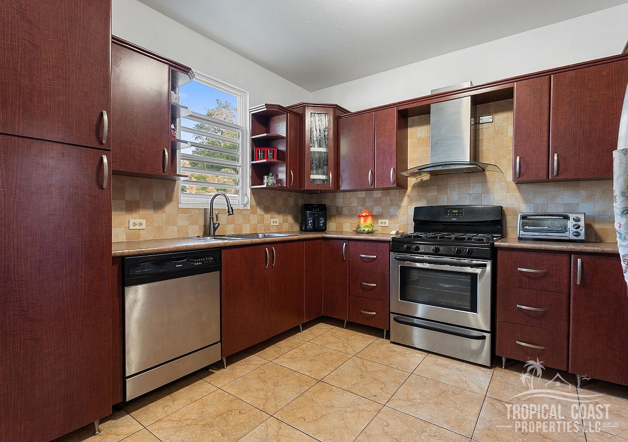 Luxury, Space & Income Potential in the HeartThis impressive residence is located in the beautiful town of Aguada, in the Barrio Marías neighborhood, with a spacious lot of 2,568.927 square meters (approximately 0.65 acres). A gem surrounded by tranquility, just minutes from Highway 2, close to schools, restaurants, and everything you need. Design, Elegance, and Space in Every Detail. From the first moment, you will be captivated by its imposing double-door main entrance, which welcomes you to a home filled with light, spaciousness, and elegance.